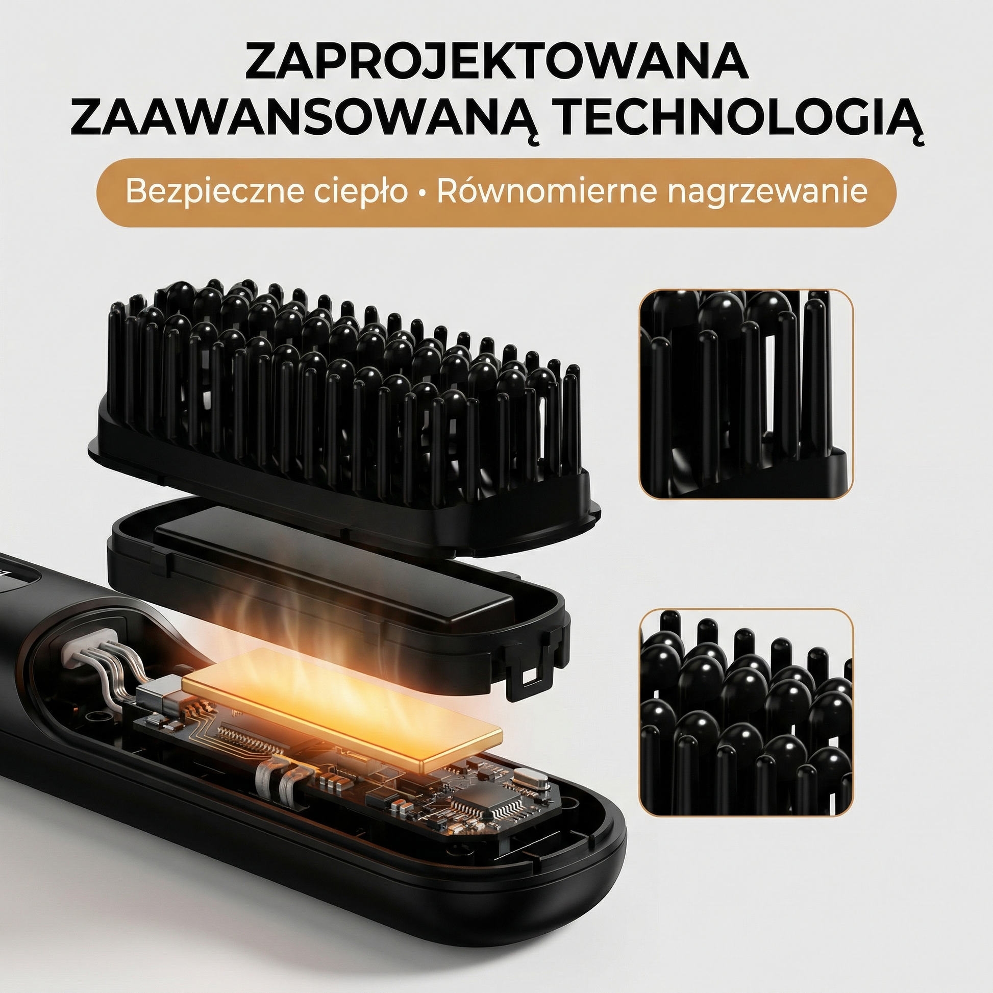 Zęby szczotki zostały zaprojektowane tak, aby gładko przechodziły przez pasma bez szarpania.